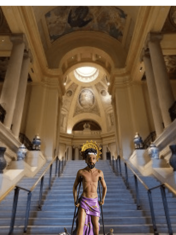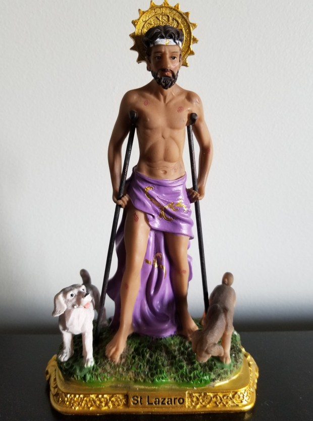 “There was a rich man who was dressed in purple and fine linen and lived in luxury every day. At his gate was laid a beggar named Lazarus, covered with sores and longing to eat what fell from the rich man’s table. Even the dogs came and licked his sores.“